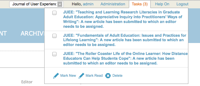 Users indicated confusion between global and journal-specific elements. We made use of clearer separation between these levels, including moving site-wide tasks to a new top navigation bar.