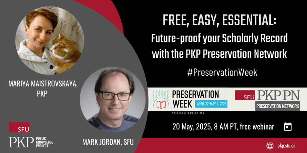 Get the latest — join our webinar! “Free, Easy, Essential: Future-Proof your Scholarly Record with the PKP Preservation Network”