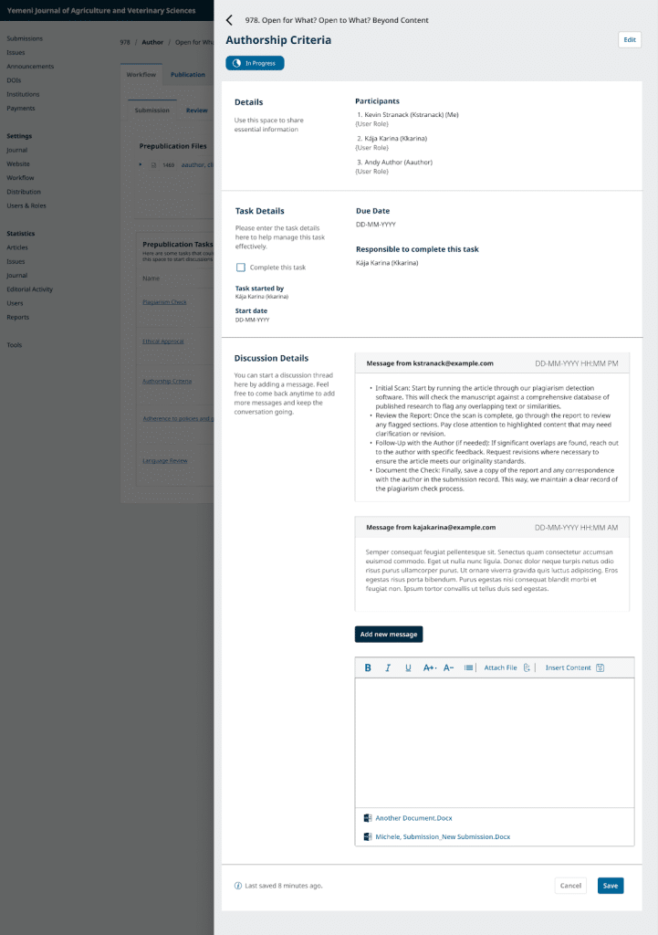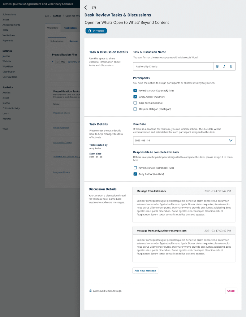 • Editorial workflow in OJS 3.5