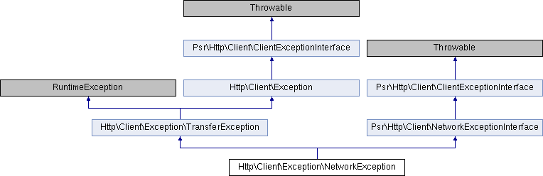 Public Member Functions inherited from Psr\Http\Client\NetworkExceptionInterface | |