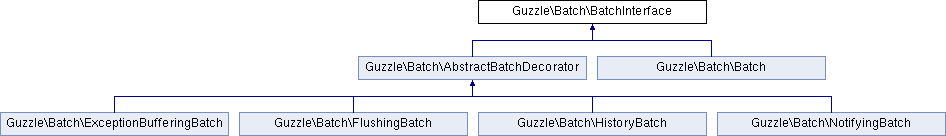 Implemented in Guzzle\Batch\Batch, Guzzle\Batch\AbstractBatchDecorator, Guzzle\Batch\NotifyingBatch, and Guzzle\Batch\ExceptionBufferingBatch.