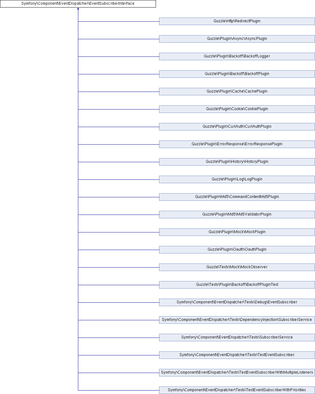 Implemented in Symfony\Component\EventDispatcher\Tests\TestEventSubscriberWithMultipleListeners, Symfony\Component\EventDispatcher\Tests\TestEventSubscriberWithMultipleListeners, Symfony\Component\EventDispatcher\Tests\TestEventSubscriberWithPriorities, Symfony\Component\EventDispatcher\Tests\TestEventSubscriberWithPriorities, Symfony\Component\EventDispatcher\Tests\TestEventSubscriber, Symfony\Component\EventDispatcher\Tests\TestEventSubscriber, Symfony\Component\EventDispatcher\Tests\SubscriberService, Symfony\Component\EventDispatcher\Tests\SubscriberService, Symfony\Component\EventDispatcher\Tests\Debug\EventSubscriber, Symfony\Component\EventDispatcher\Tests\Debug\EventSubscriber, Symfony\Component\EventDispatcher\Tests\DependencyInjection\SubscriberService, Symfony\Component\EventDispatcher\Tests\DependencyInjection\SubscriberService, Guzzle\Plugin\Cache\CachePlugin, Guzzle\Plugin\Log\LogPlugin, Guzzle\Plugin\Backoff\BackoffPlugin, Guzzle\Plugin\Oauth\OauthPlugin, Guzzle\Plugin\Mock\MockPlugin, Guzzle\Plugin\Backoff\BackoffLogger, Guzzle\Plugin\Md5\Md5ValidatorPlugin, Guzzle\Plugin\Md5\CommandContentMd5Plugin, Guzzle\Http\RedirectPlugin, Guzzle\Tests\Plugin\Backoff\BackoffPluginTest, Guzzle\Plugin\CurlAuth\CurlAuthPlugin, Guzzle\Plugin\Cookie\CookiePlugin, Guzzle\Plugin\History\HistoryPlugin, Guzzle\Plugin\ErrorResponse\ErrorResponsePlugin, Guzzle\Plugin\Async\AsyncPlugin, and Guzzle\Tests\Mock\MockObserver.
