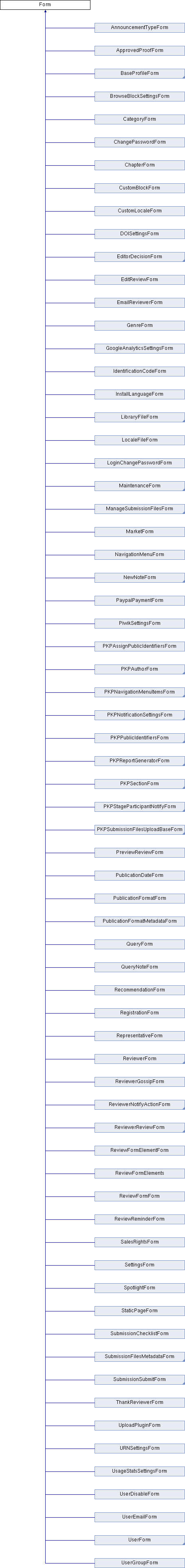 Reimplemented in ReviewerForm, UserDetailsForm, AddParticipantForm, SeriesForm, ChapterForm, PKPAuthorForm, UserGroupForm, RecommendationForm, NavigationMenuForm, PublicationFormatForm, PKPNavigationMenuItemsForm, PKPNotificationSettingsForm, SubmissionFilesMetadataForm, PKPStageParticipantNotifyForm, SubmissionFilesUploadForm, PKPReviewerReviewStep1Form, PKPReviewerReviewStep3Form, StaticPageForm, PromoteForm, UserRoleForm, AuthorForm, PKPReviewerReviewStep2Form, InitiateReviewForm, UpgradeForm, SubmissionSubmitStep4Form, QueryForm, PKPSubmissionSubmitStep1Form, PublicationFormatMetadataForm, PKPReportGeneratorForm, CategoryForm, MarketForm, RegistrationForm, InstallForm, PKPPublicIdentifiersForm, PublicationDateForm, SalesRightsForm, IdentificationCodeForm, RepresentativeForm, URNSettingsForm, PublicProfileForm, DOISettingsForm, ReviewReminderForm, GenreForm, QueryNoteForm, BrowseBlockSettingsForm, EditReviewForm, ReviewFormElementForm, PKPSectionForm, UsageStatsSettingsForm, ApprovedProofForm, AnnouncementTypeForm, SendReviewsForm, SpotlightForm, ChangePasswordForm, ThankReviewerForm, SubmissionChecklistForm, UserForm, NewNoteForm, NavigationMenuItemsForm, ContactForm, IdentityForm, UserDisableForm, PKPSubmissionSubmitStep3Form, ReviewerNotifyActionForm, RolesForm, CreateReviewerForm, SettingsForm, CustomBlockForm, GoogleAnalyticsSettingsForm, APIProfileForm, InstallLanguageForm, ReviewFormForm, UserEmailForm, ReviewerGossipForm, UploadPluginForm, SubmissionFilesUploadConfirmationForm, LoginChangePasswordForm, NewLibraryFileForm, EditLibraryFileForm, EditLibraryFileForm, EnrollExistingReviewerForm, BaseProfileForm, SubmissionFilesArtworkMetadataForm, SupplementaryFileMetadataForm, PublicIdentifiersForm, NewLibraryFileForm, NewReviewRoundForm, ReinstateReviewerForm, UnassignReviewerForm, PKPSubmissionSubmitStep4Form, and PKPSubmissionSubmitStep2Form.