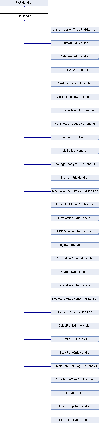 Reimplemented in QueriesGridHandler, AuthorGridHandler, SubmissionChecklistGridHandler, SeriesGridHandler, ReviewFormGridHandler, ReviewFormElementsGridHandler, ContextGridHandler, GenreGridHandler, ChapterGridHandler, and CategoryCategoryGridHandler.