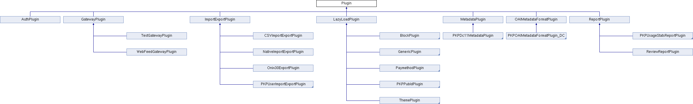 Reimplemented in UsageStatsPlugin, ThemePlugin, StaticPagesPlugin, PaypalPaymentPlugin, ManualPaymentPlugin, PKPAcronPlugin, WebFeedPlugin, CustomBlockManagerPlugin, PKPUsageEventPlugin, MetadataPlugin, CSVImportExportPlugin, NativeImportExportPlugin, Onix30ExportPlugin, UserImportExportPlugin, LazyLoadPlugin, PKPPubIdPlugin, OAIMetadataFormatPlugin, PKPUsageStatsReportPlugin, DOIPubIdPlugin, URNPubIdPlugin, PKPUserImportExportPlugin, ReviewReportPlugin, DublinCoreMetaPlugin, GoogleAnalyticsPlugin, GoogleScholarPlugin, HtmlMonographFilePlugin, PdfJsViewerPlugin, PiwikPlugin, TinyMCEPlugin, TestGatewayPlugin, CustomLocalePlugin, and PlagiarismPlugin.