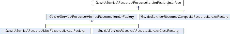 Implemented in Guzzle\Service\Resource\CompositeResourceIteratorFactory, and Guzzle\Service\Resource\AbstractResourceIteratorFactory.