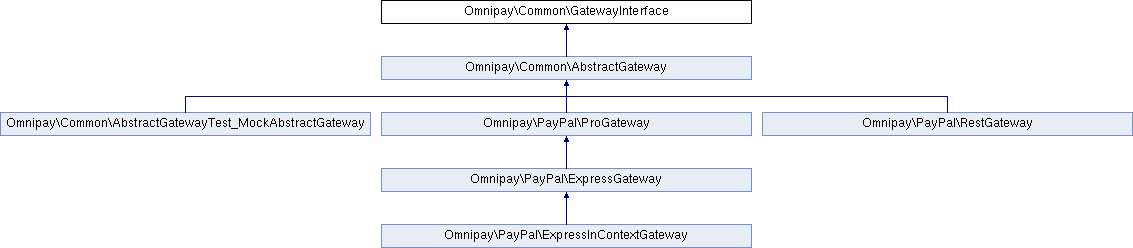 Implemented in Omnipay\PayPal\RestGateway, Omnipay\PayPal\RestGateway, Omnipay\Common\AbstractGateway, Omnipay\Common\AbstractGateway, Omnipay\PayPal\ProGateway, Omnipay\PayPal\ProGateway, Omnipay\PayPal\ExpressGateway, and Omnipay\PayPal\ExpressGateway.