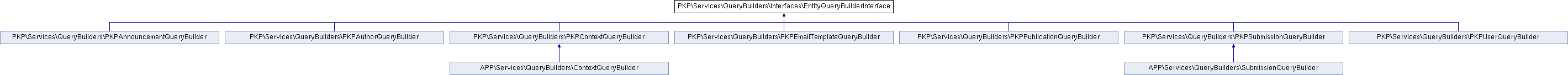 Implemented in PKP\Services\QueryBuilders\PKPUserQueryBuilder, PKP\Services\QueryBuilders\PKPSubmissionQueryBuilder, PKP\Services\QueryBuilders\PKPEmailTemplateQueryBuilder, PKP\Services\QueryBuilders\PKPContextQueryBuilder, PKP\Services\QueryBuilders\PKPAuthorQueryBuilder, and PKP\Services\QueryBuilders\PKPAnnouncementQueryBuilder.