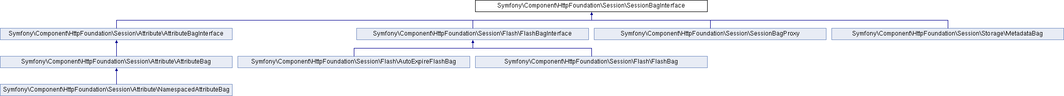 Implemented in Symfony\Component\HttpFoundation\Session\Flash\AutoExpireFlashBag, Symfony\Component\HttpFoundation\Session\Flash\FlashBag, Symfony\Component\HttpFoundation\Session\Flash\AutoExpireFlashBag, Symfony\Component\HttpFoundation\Session\Flash\FlashBag, Symfony\Component\HttpFoundation\Session\Attribute\AttributeBag, Symfony\Component\HttpFoundation\Session\Attribute\AttributeBag, Symfony\Component\HttpFoundation\Session\Storage\MetadataBag, Symfony\Component\HttpFoundation\Session\Storage\MetadataBag, and Symfony\Component\HttpFoundation\Session\SessionBagProxy.