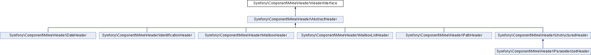 Implemented in Symfony\Component\Mime\Header\IdentificationHeader, Symfony\Component\Mime\Header\MailboxListHeader, Symfony\Component\Mime\Header\MailboxHeader, Symfony\Component\Mime\Header\PathHeader, Symfony\Component\Mime\Header\DateHeader, and Symfony\Component\Mime\Header\UnstructuredHeader.