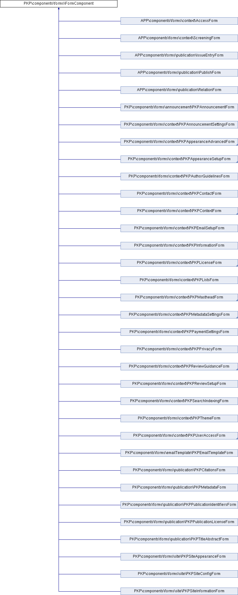 References PKP\components\forms\FormComponent\$action, PKP\components\forms\FormComponent\$id, PKP\components\forms\FormComponent\$locales, and PKP\components\forms\FormComponent\$method.