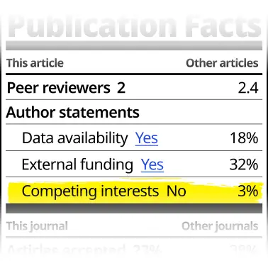 On submitting an article, authors are asked to declare competing interests, data availability, and external funding sources.
