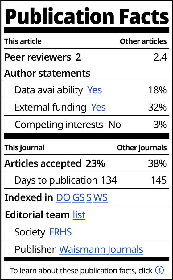 Note: N/A (“not available”) is used on the label when a publication fact was introduced after an earlier article was published (such as asking authors to sign “competing interest” statement) or is not available with this version of the publishing platform. As well, the label may not be applied to a journal’s earlier articles for technical reasons.